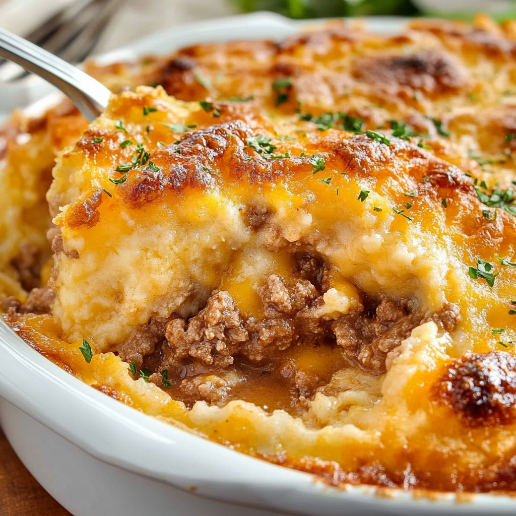 - The flavor profile combines savory beef with cheesy biscuit topping for a delightful experience