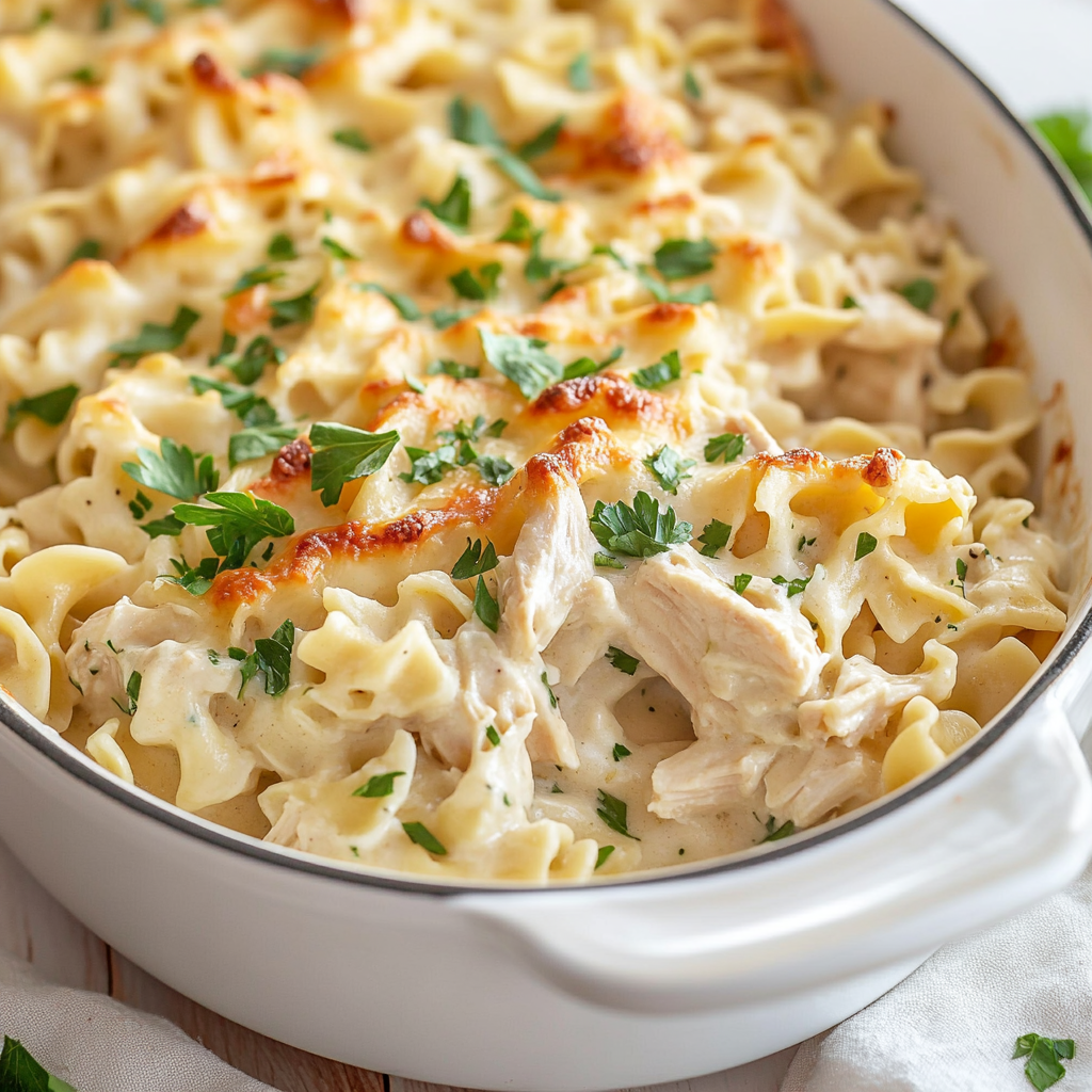 Indulge in the warmth of homemade chicken noodle casserole, a creamy and savory dish that brings comfort to every dinner table. This easy-to-make recipe combines tender chicken, hearty egg noodles, and a medley of vegetables all enveloped in a rich sauce. Perfect for family gatherings or cozy evenings at home, this casserole is sure to be a crowd-pleaser.