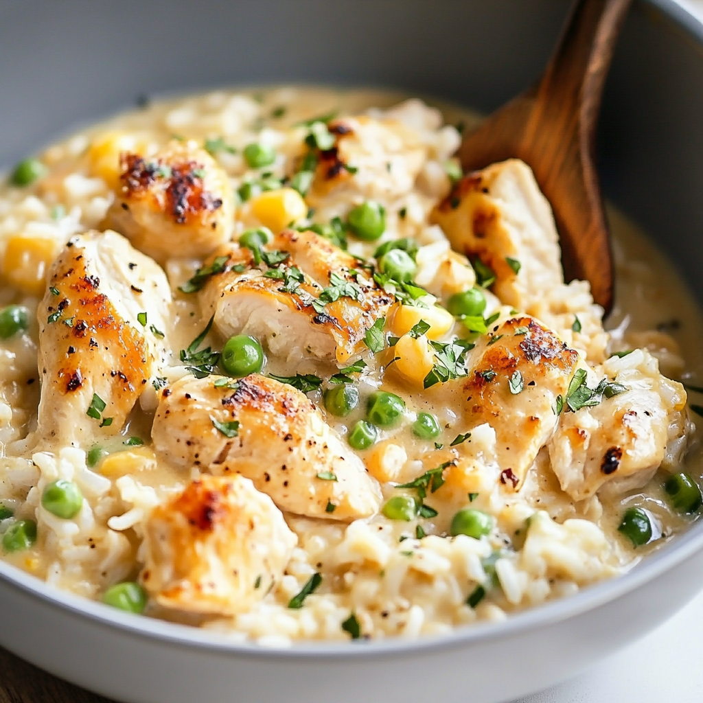 Creamy chicken and rice is the ultimate comfort food that wraps you in warmth and flavor. This dish features tender, seasoned chicken combined with fluffy long-grain rice in a rich, velvety sauce that tantalizes your taste buds. Perfect for weeknight dinners or cozy gatherings, this easy-to-make recipe will leave everyone asking for seconds. It’s a delicious blend of savory goodness that transforms simple ingredients into a delightful meal, making it an irresistible addition to your culinary repertoire.