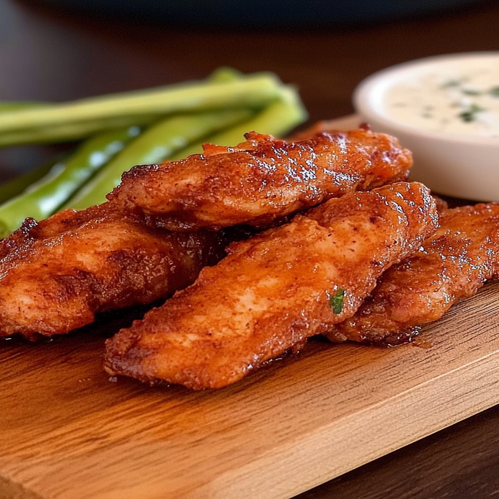 Once baked to perfection, take them out of the oven (don’t burn yourself; we want tasty tenders—not crispy fingers!). Transfer them onto plates and serve hot with your favorite dipping sauces like ranch or honey mustard.