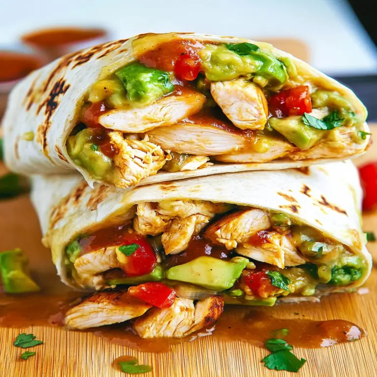 Experience a burst of flavors with this Chicken Avocado Burrito, featuring tender chicken and velvety avocado wrapped in a warm tortilla. Perfect for any occasion, whether it’s a quick lunch or a lively dinner gathering, this recipe allows for easy customization to suit your taste. Simple to prepare and loaded with wholesome ingredients, these burritos are sure to impress family and friends alike!