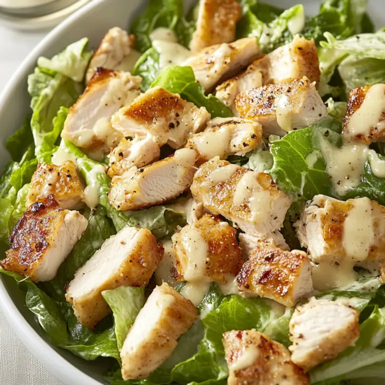 Indulge in a vibrant Chicken Caesar Salad featuring tender grilled chicken, crisp romaine, and a creamy dressing. It’s the ultimate choice for a quick lunch or satisfying dinner.
