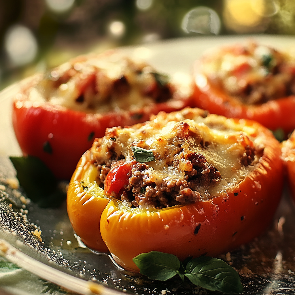 Delight in these flavorful stuffed bell peppers filled with seasoned ground beef, fresh veggies, and melted cheese. A hearty dish that’s perfect for family dinners and gatherings.