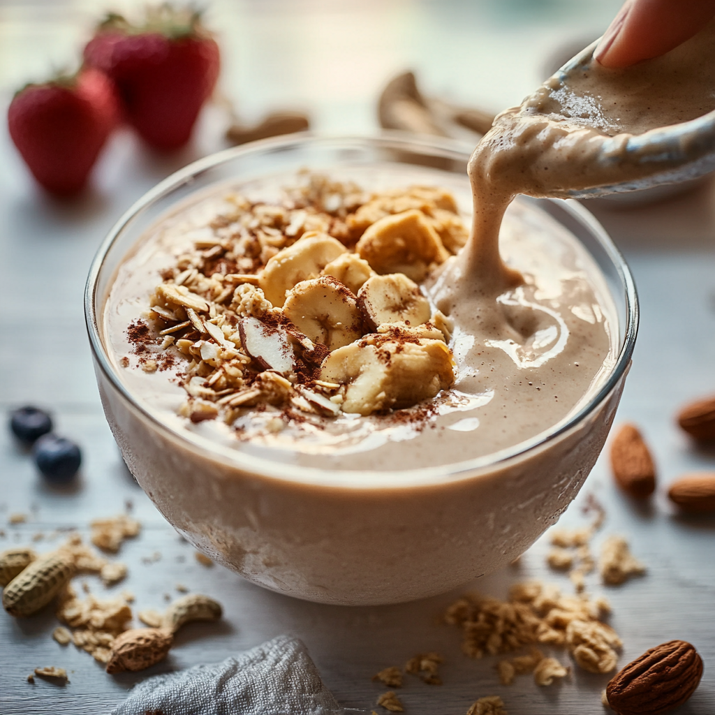 Indulge in a creamy and nutritious peanut butter smoothie, blending rich flavors of banana and cocoa. Perfect for breakfast or as a refreshing snack!