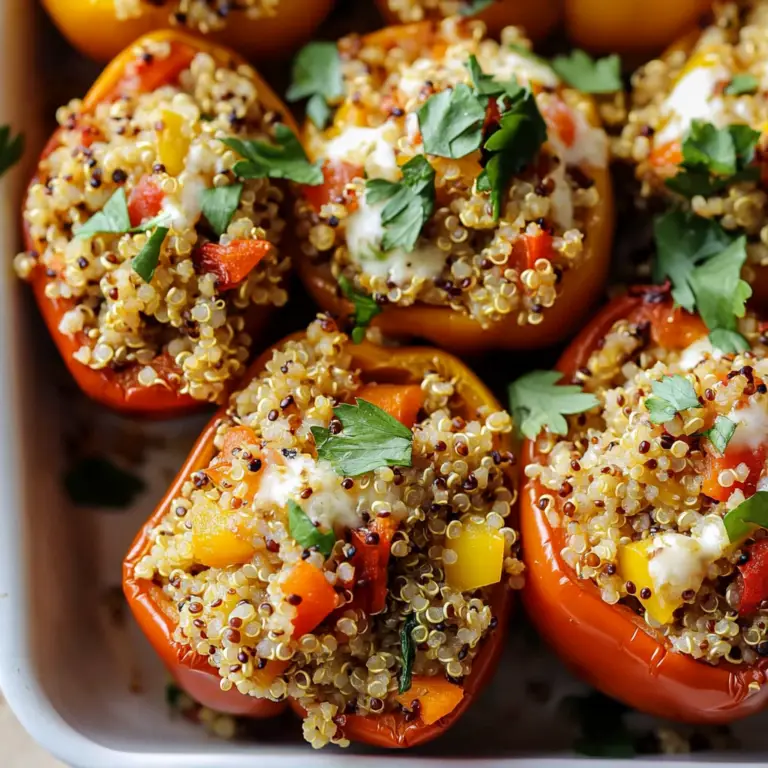 Quinoa stuffed bell peppers are a colorful, nutritious, and flavorful dish that simplifies healthy eating. These vibrant peppers are filled with a delicious combination of quinoa, black beans, corn, and spices, baked to perfection for a satisfying meal. Perfect for family dinners or meal prep, they can easily be customized to suit your taste preferences. Enjoy the delightful crunch and warm filling in every bite!