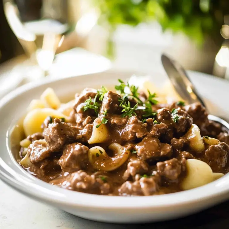 Beef stroganoff with ground beef is the ultimate comfort food that delivers warmth and satisfaction in every bite. This easy recipe features tender ground beef simmered in a creamy sauce enriched with sautéed mushrooms, onions, and garlic, all topped with a velvety dollop of sour cream. It’s perfect for busy weeknights or cozy family dinners, served over fluffy egg noodles or rice to soak up all that delicious sauce. In just under 30 minutes, you can create a meal that not only delights the taste buds but also evokes nostalgic memories of home-cooked goodness.
