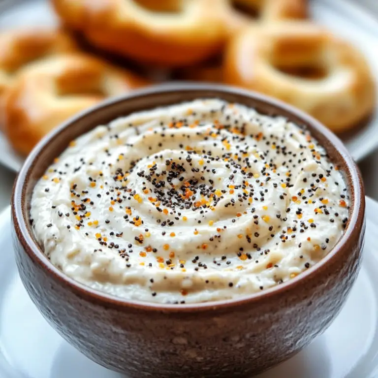 Everything Bagel Dip is an easy-to-make treat that captures all the flavors of your favorite bagels in a creamy format perfect for dipping. With simple ingredients like cream cheese and various seasonings, this dip quickly becomes a crowd-pleaser at any gathering. Its versatility allows you to pair it with fresh veggies, crunchy chips, or toasted bread, making it suitable for any occasion. Whether you prepare it ahead of time or customize its ingredients to match your taste preferences, this dip is sure to impress friends and family alike. Enjoy creating lasting memories around this delicious dish!