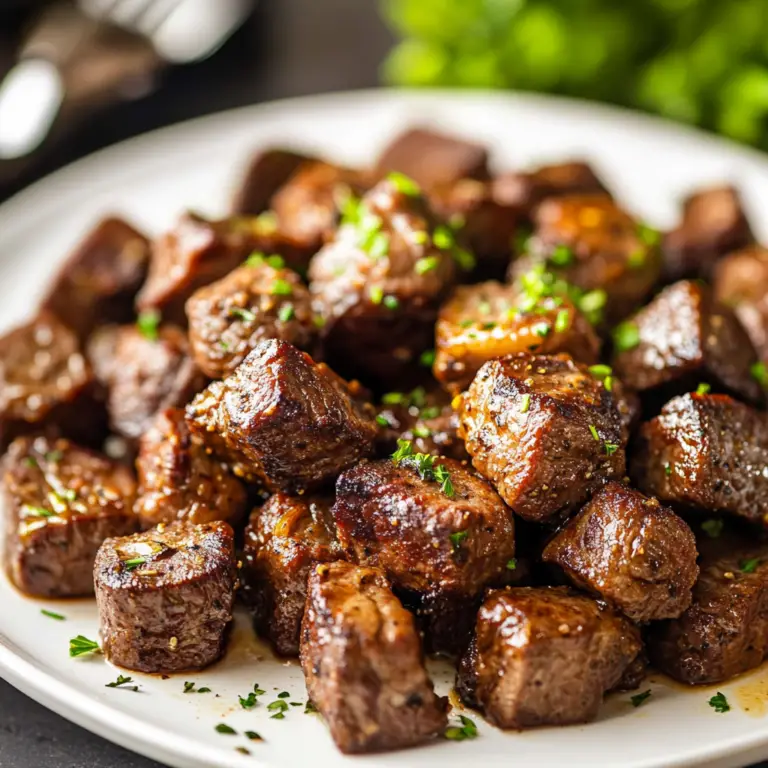 In summary, Garlic Butter Steak Bites offer an indulgent yet straightforward dining experience that’s sure to impress anyone at your table. By using tender cuts of beef and infusing them with rich garlic butter flavor, you create an irresistible dish that pairs beautifully with various sides like mashed potatoes or fresh salads. Preparing these steak bites in advance can save time without sacrificing quality; just remember to store leftovers properly for another delightful meal later on. Whether served at a dinner party or enjoyed on a cozy night in, this recipe is bound to become a favorite among family and friends alike!