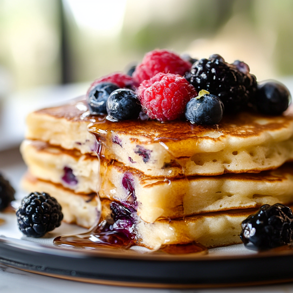 - Fresh Berries: Serve your pancakes with a mix of strawberries, blueberries, and raspberries for a burst of flavor and color.