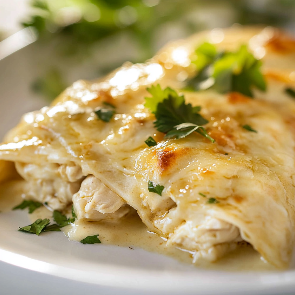 White chicken enchiladas are a comforting and delicious meal that brings a taste of Mexican cuisine to your table. These enchiladas feature tender, shredded chicken wrapped in warm corn tortillas, all smothered in a creamy white sauce and topped with melted cheese. Perfect for family dinners or casual gatherings, this dish is not only flavorful but also quick to prepare. Customizable with your favorite ingredients, you can easily add vegetables or spices to suit your taste. Serve these enchiladas with sides like Mexican rice or fresh guacamole for a complete and satisfying meal that everyone will love.