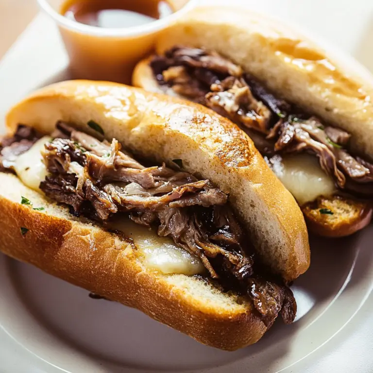 French Dip Sandwiches are the ultimate comfort food, combining tender slices of juicy roast beef with a crusty baguette, all complemented by a rich and savory au jus for dipping. This easy-to-make dish is perfect for any occasion, whether you’re hosting a casual gathering or enjoying a cozy family dinner. With just a handful of ingredients and simple steps, you can create a hearty meal that will leave your guests clamoring for seconds. The delightful aroma of baking bread and simmering broth fills your kitchen, making it impossible to resist this delicious classic. Get ready to indulge in the warm, satisfying flavors of French Dip Sandwiches!