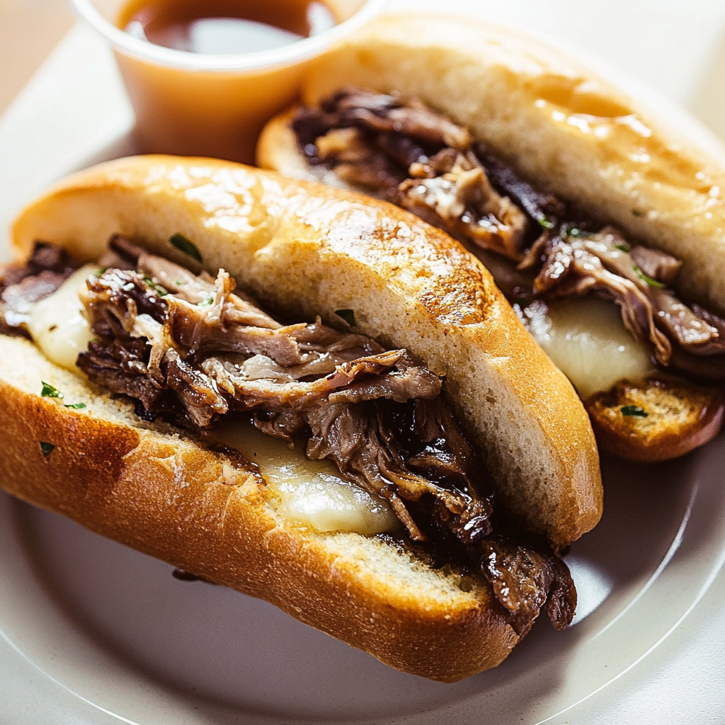 Transfer sandwiches onto plates and serve immediately with bowls of warm au jus for dipping. Enjoy every flavorful bite!