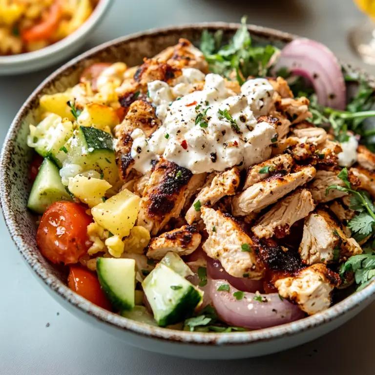 In conclusion, making Greek Chicken Bowls is both simple and rewarding. This recipe combines marinated grilled chicken with fresh vegetables over a base of quinoa or rice—perfectly embodying Mediterranean flavors. By following these steps and using quality ingredients like feta cheese and kalamata olives, you will enjoy a healthy yet satisfying meal packed with nutrients. Feel free to get creative with toppings or sides to match your taste preferences! Enjoy crafting this delightful dish that brings vibrant flavors right into your kitchen!