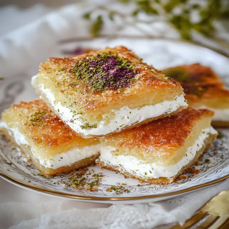 Kunafa with cream is a luscious Middle Eastern dessert that perfectly balances the crunch of golden pastry with a rich, creamy filling. This indulgent treat evokes nostalgia and joy, making it a highlight at festive gatherings like Eid. With its delightful layers and sweet syrup drizzle, Kunafa with cream is not only visually stunning but also irresistibly delicious, promising to be the star of your dessert table.