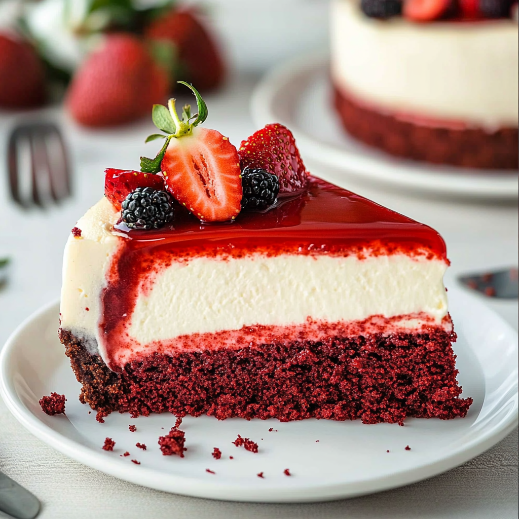Picture this: it’s a sunny afternoon, and you’re lounging in your kitchen, surrounded by friends or family. You whip out this stunning cheesecake, its deep red hue contrasting beautifully with the creamy white top and fresh strawberry garnish. Everyone gasps in delight! This decadent dessert is not just about flavor; it’s an experience that brings people together and creates unforgettable memories.