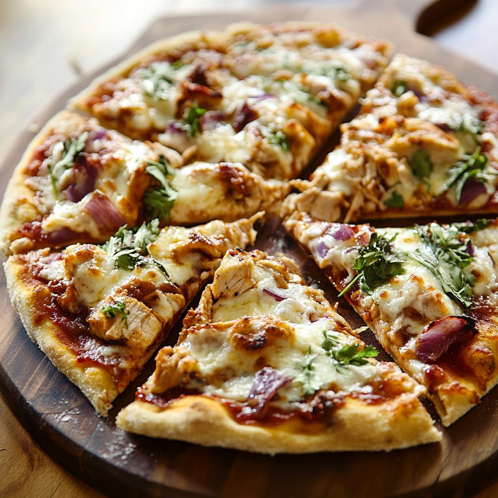 In conclusion, BBQ Chicken Pizza Loaded with Cheese offers a delightful combination of flavors that appeals to pizza lovers everywhere. With its rich cheese topping and zesty barbecue sauce, this dish is perfect for any occasion. Whether you serve it alongside a fresh salad or indulge in garlic breadsticks, each bite will leave you craving more. Plus, the ability to customize this recipe ensures that everyone can enjoy their own version at home. So gather your ingredients and treat yourself and your loved ones to this mouthwatering pizza creation today!
