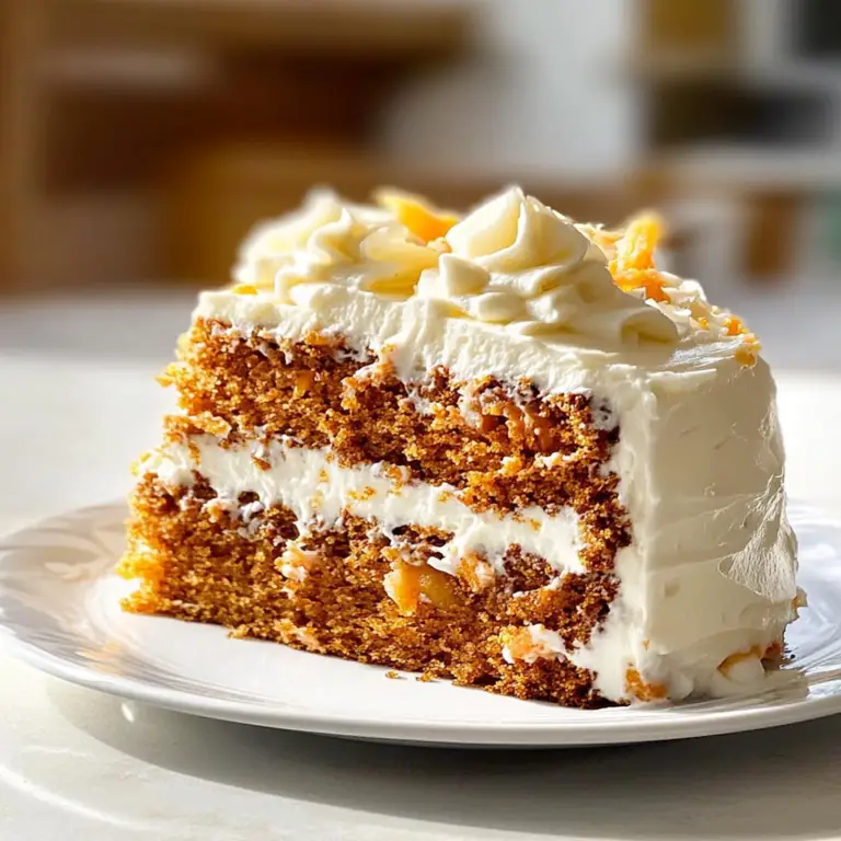 Carrot cake is the ultimate comfort dessert, blending the natural sweetness of freshly grated carrots with warm spices and topped with a velvety cream cheese frosting. Perfect for any occasion, this moist and fluffy cake not only delights the taste buds but also brings a pop of vibrant orange to your table. Whether celebrating a special event or enjoying a cozy afternoon treat, this carrot cake is sure to impress family and friends alike.