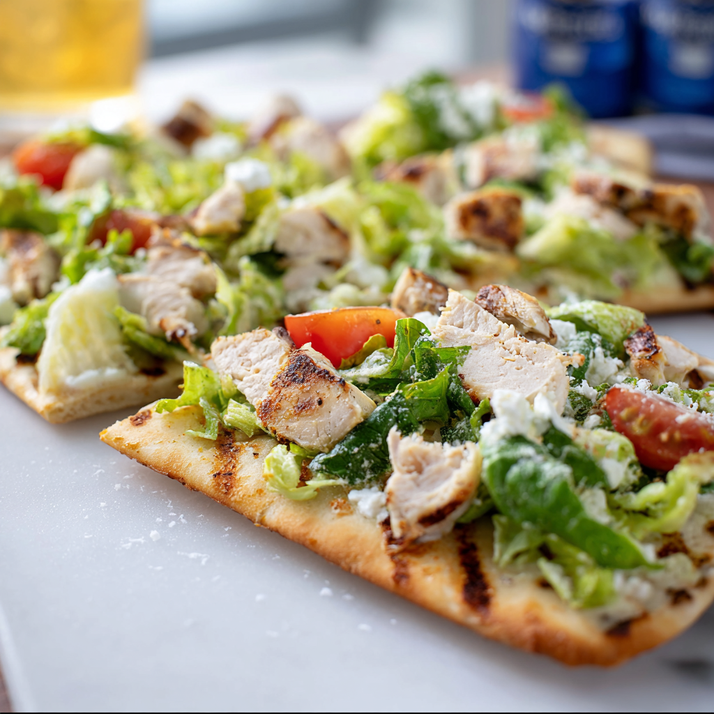 Experience the delightful combination of crispy flatbread, juicy chicken, and creamy Caesar dressing with this Chicken Caesar Flatbread recipe. Perfect for busy weeknights or casual gatherings, this dish is quick to make and can be customized to fit your taste. With vibrant colors and mouthwatering flavors, it’s sure to impress family and friends. Get ready for a delicious meal that’s as fun to make as it is to eat!