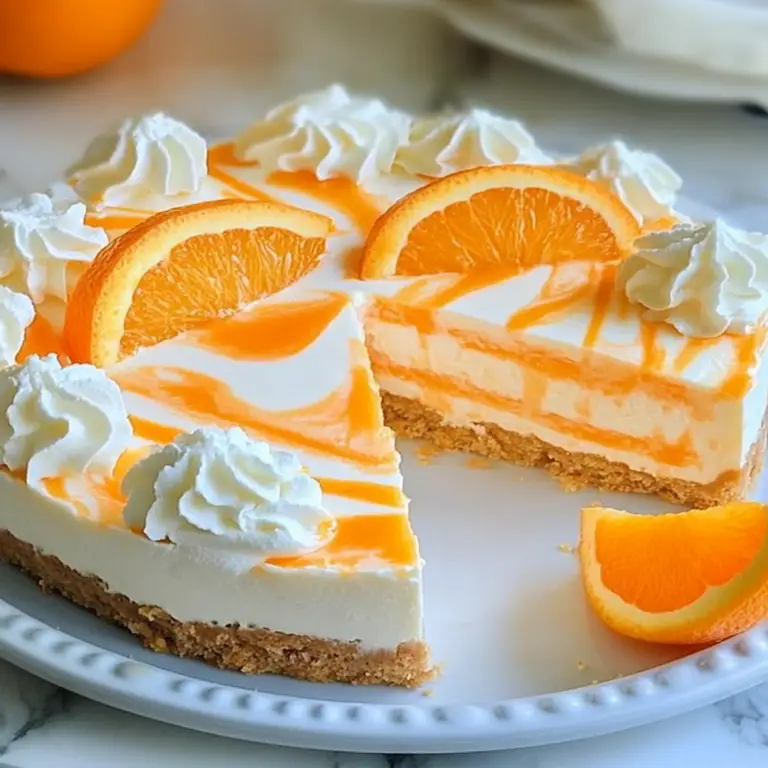 No-Bake Orange Creamsicle Cheesecake is a refreshing dessert that harmoniously blends creamy cheesecake with the vibrant zest of oranges. This delightful treat requires no baking, making it perfect for warm summer days or any occasion when you want to impress without the heat. With its smooth texture and bright flavor, each bite transports you to a sunny paradise, making it ideal for gatherings or as a special indulgence at home.