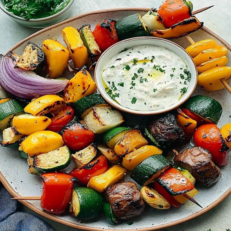 Summer Veggie Skewers served with garlic dip are a colorful and flavorful dish perfect for outdoor gatherings. These vibrant skewers feature a delightful mix of fresh vegetables grilled to perfection, paired with a creamy garlic dip that adds a delicious twist. Ideal for barbecues or casual get-togethers, this recipe is easily customizable with your favorite seasonal produce. Enjoy the taste of summer while impressing your guests with this simple yet stunning dish.