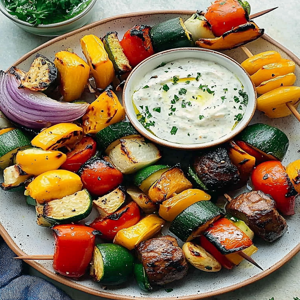 Serving Suggestion: Arrange the grilled veggie skewers on a platter next to your garlic dip. Watch as friends gather around—these beauties are perfect for sharing!