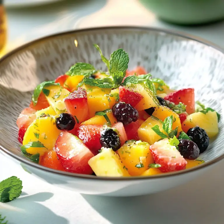 Nothing says summer like a refreshing Fruit Salad with Mint & Lime. Picture this: juicy watermelon, sweet strawberries, and tangy pineapple dancing together in a rainbow of colors, all while a light breeze carries the invigorating aroma of fresh mint. It’s almost as if the universe conspired to create the perfect dish to cool you down on a hot day! Trust me, your taste buds will thank you, and your friends will be begging for the recipe.