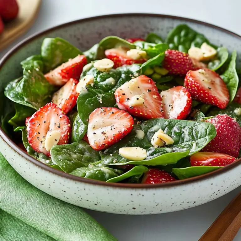 Bright, vibrant, and bursting with flavor, this Strawberry Spinach Salad combines sweet strawberries with crunchy spinach, drizzled in a tangy balsamic vinaigrette. Perfect for any occasion—be it brunch, lunch, or dinner—this salad is sure to impress guests and leave them coming back for seconds. Quick to prepare and easily customizable, it’s a delightful dish that captures the essence of summer.