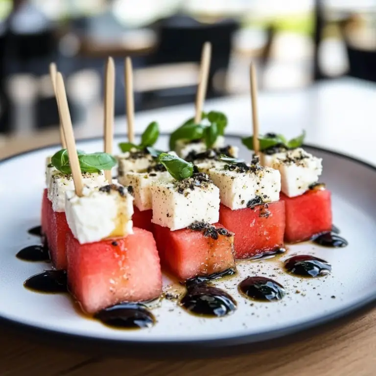 Experience the perfect blend of sweet and savory with Watermelon and Feta Skewers. These vibrant, easy-to-make treats are ideal for summer gatherings, picnics, or simply enjoying at home. Juicy watermelon cubes paired with creamy feta cheese and aromatic basil create a flavor sensation that refreshes your palate. Drizzled with balsamic glaze, these skewers are not only delicious but also visually stunning—sure to impress your guests!