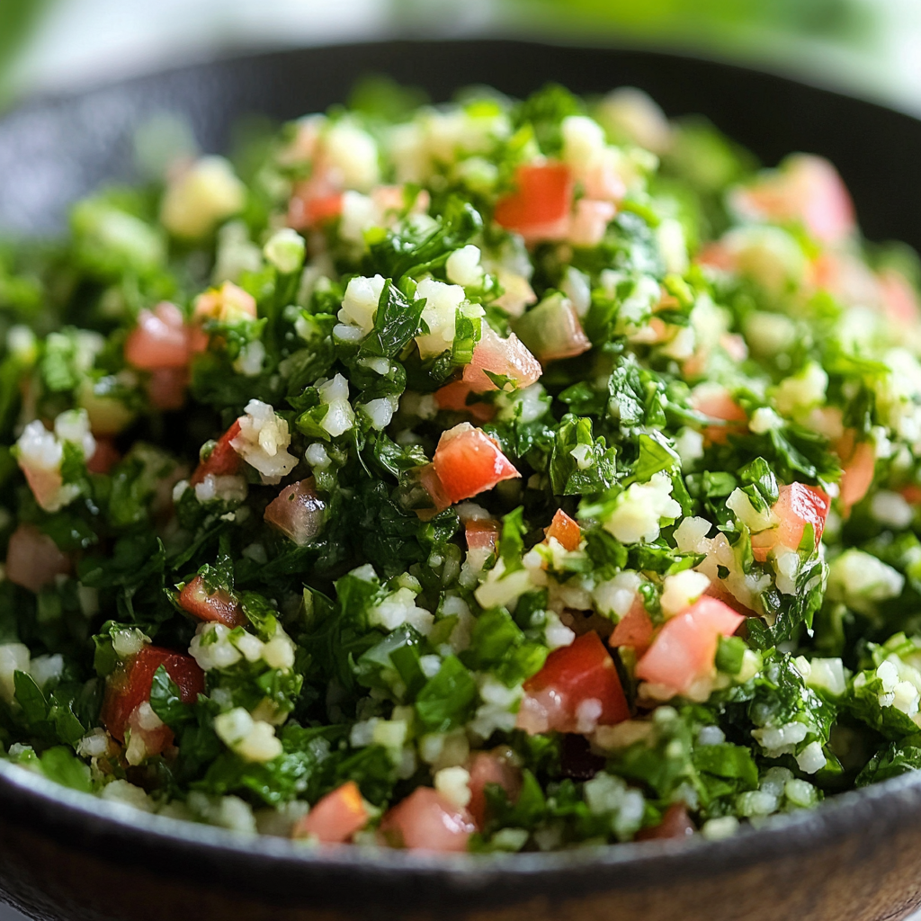 Growing up in a family that embraced Mediterranean cuisine, I fondly remember summer picnics filled with bowls of this colorful salad. It was a staple at gatherings, each bite reminding me of sun-soaked days and laughter. Whether served as a side or enjoyed as the main event during warm evenings with friends, this dish effortlessly elevates any meal. With its bright colors and refreshing taste, Tabbouleh is not only delicious but also nutritious—a perfect addition to your culinary repertoire.