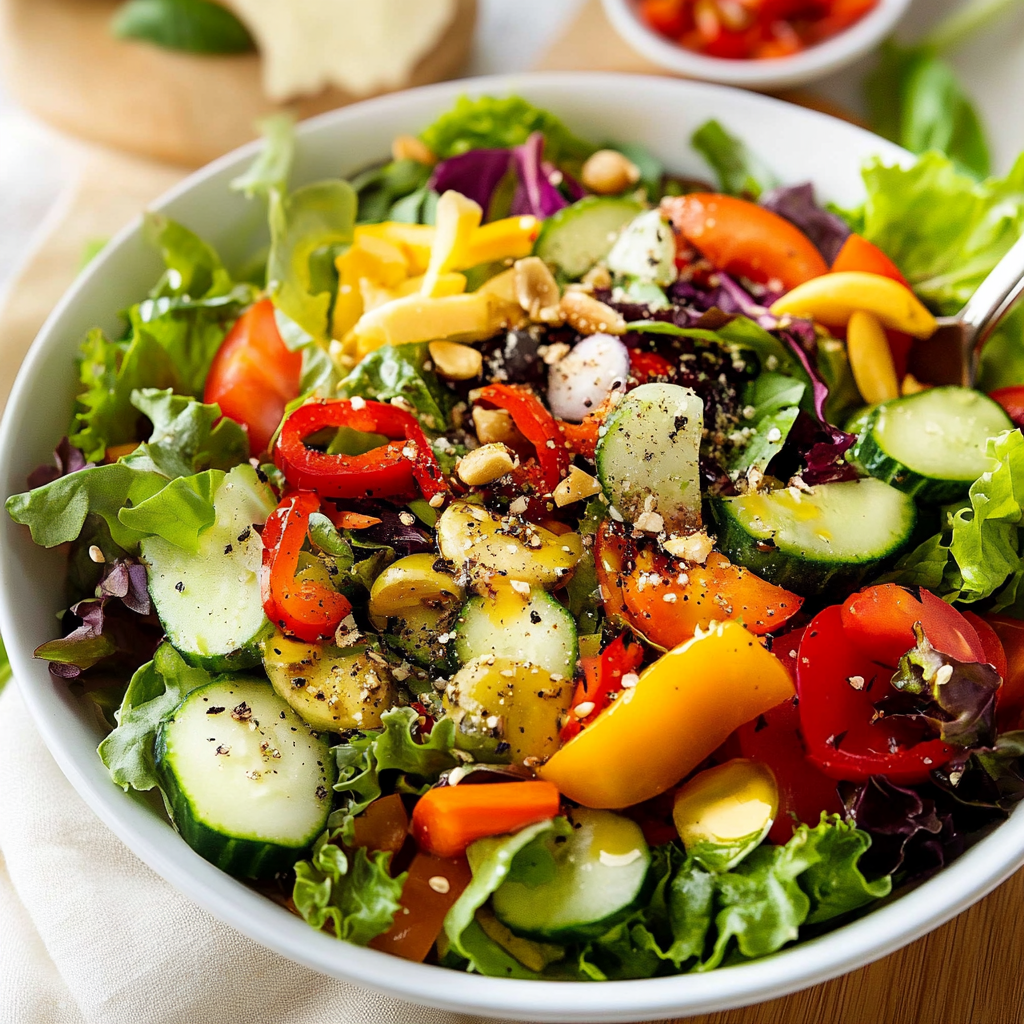 Enjoy this ultimate garden salad fresh crunchy packed with colorful veggies as an appetizer or side dish—it’s perfect for any occasion!