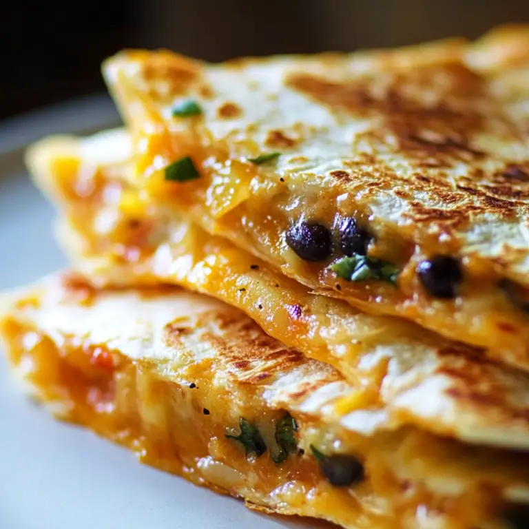 Vegetable Quesadillas are a delicious blend of fresh, vibrant veggies and gooey cheese, all wrapped in a crispy tortilla. This easy-to-make dish is perfect for any meal of the day, whether it’s a quick lunch or a satisfying dinner with friends. Packed with nutrient-rich ingredients like bell peppers, onions, and spinach, these quesadillas not only taste amazing but also support a healthy lifestyle. The beauty of this recipe lies in its versatility—you can customize it with your favorite vegetables and spices to create a unique flavor profile that suits your palate. Ready in under 30 minutes, serve these quesadillas hot alongside salsa or guacamole for an unforgettable dining experience.